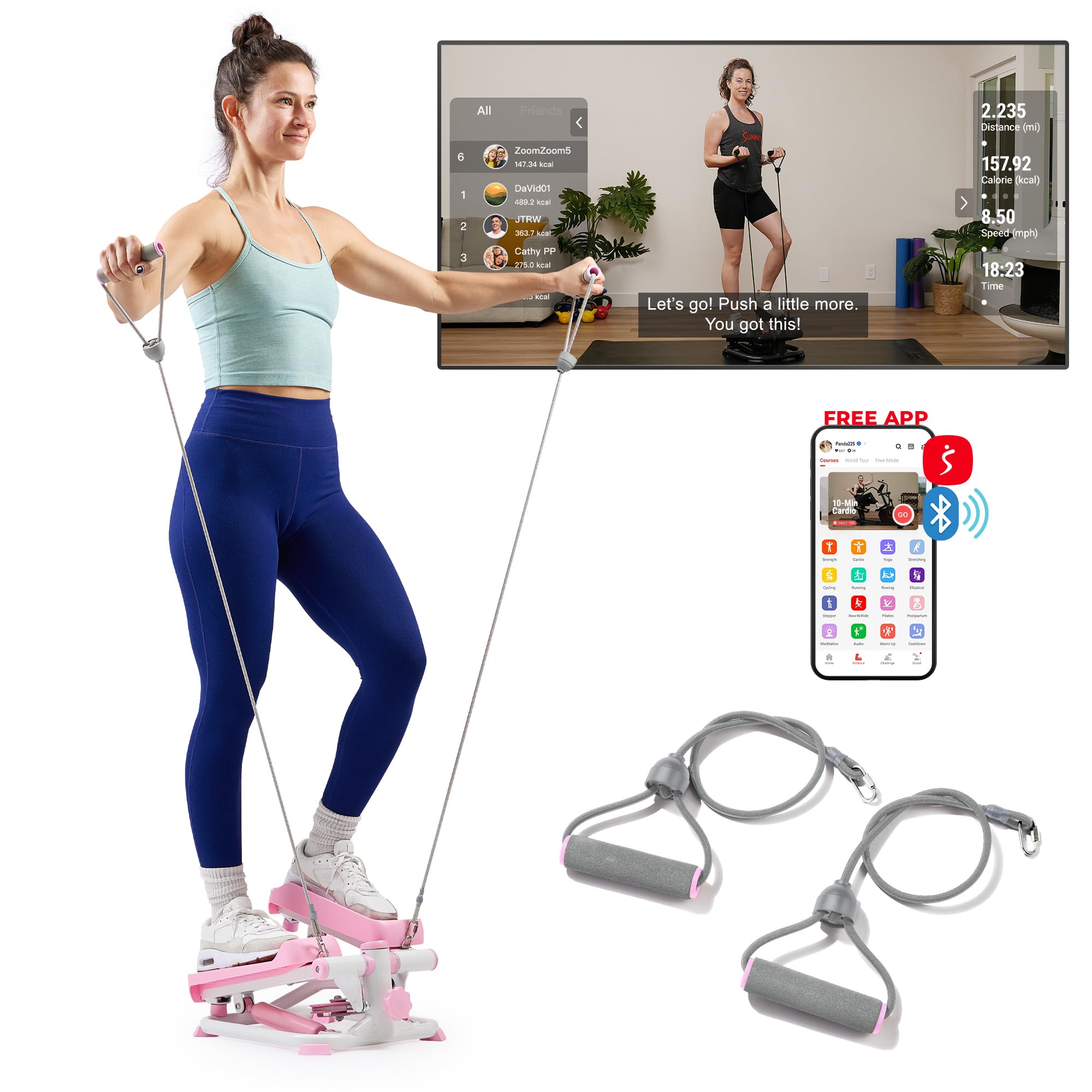 Built-in resistance bands allow you to work your upper body simultaneously, turning a simple stepper session into a full-body workout. With a sturdy steel frame that supports up to 300 lbs, this machine is stable, reliable, and perfect for daily use. Its compact design makes it easy to store, and it’s compatible with fitness tracking apps to help you stay on top of your goals.
