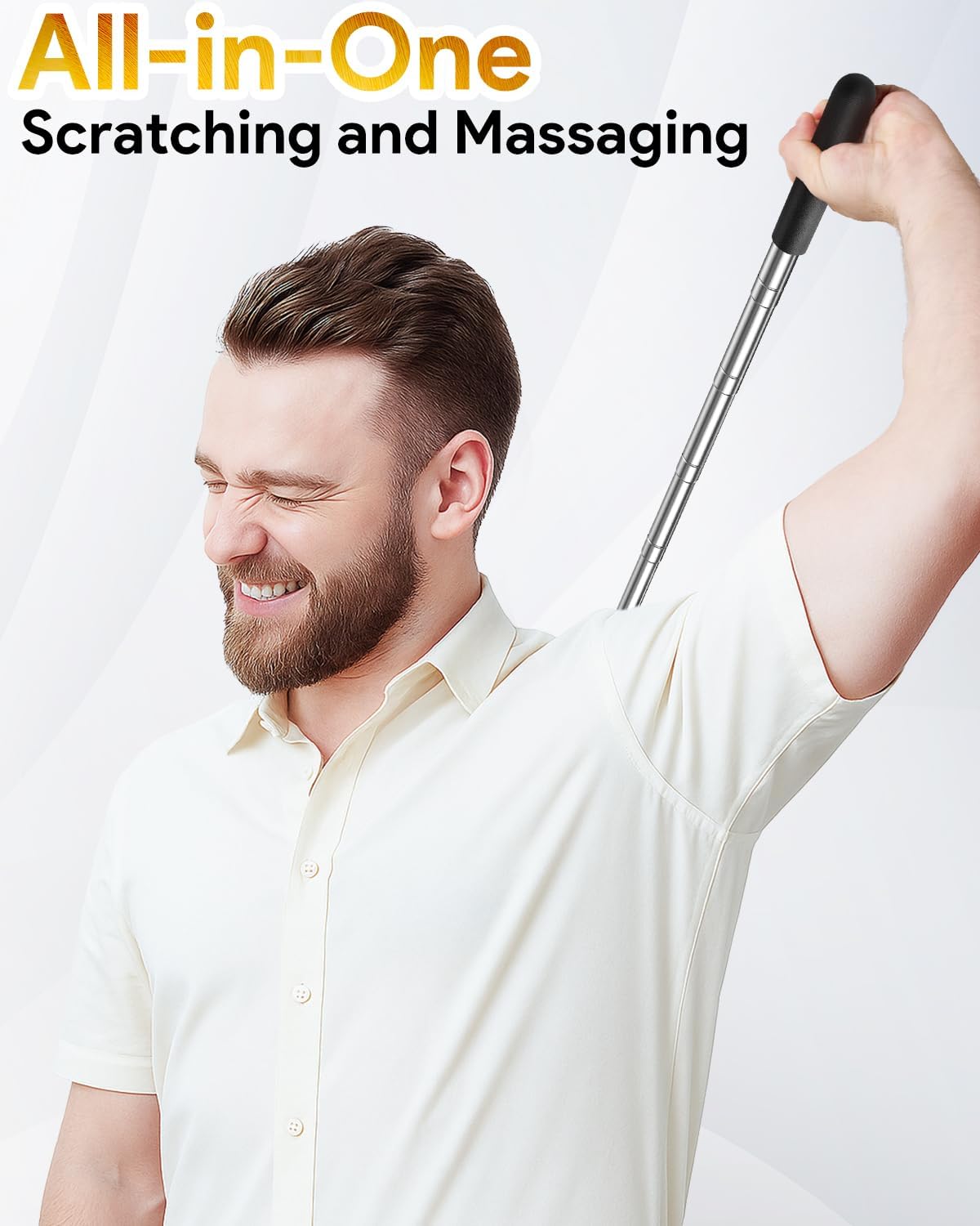 Telescoping Back Scratcher with 4 Detachable Heads – Adjustable Stainless Steel Gift for Men & Women