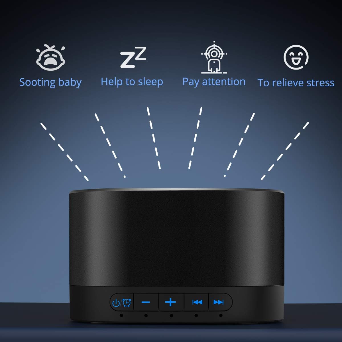 White Noise Machine – 20 Soothing Sounds, Memory, Timer & USB/AC Powered – Black